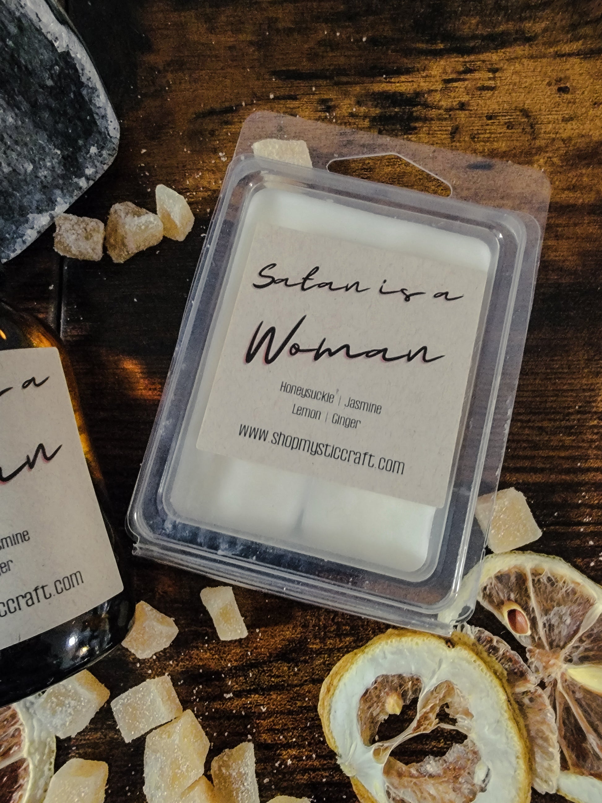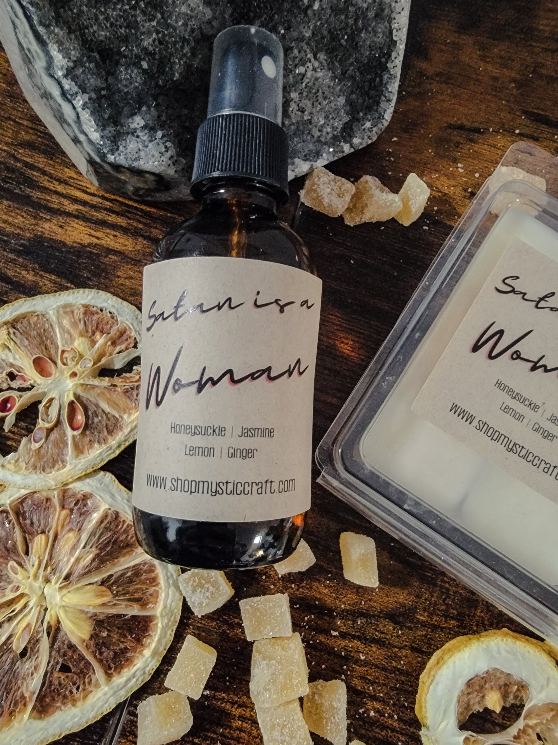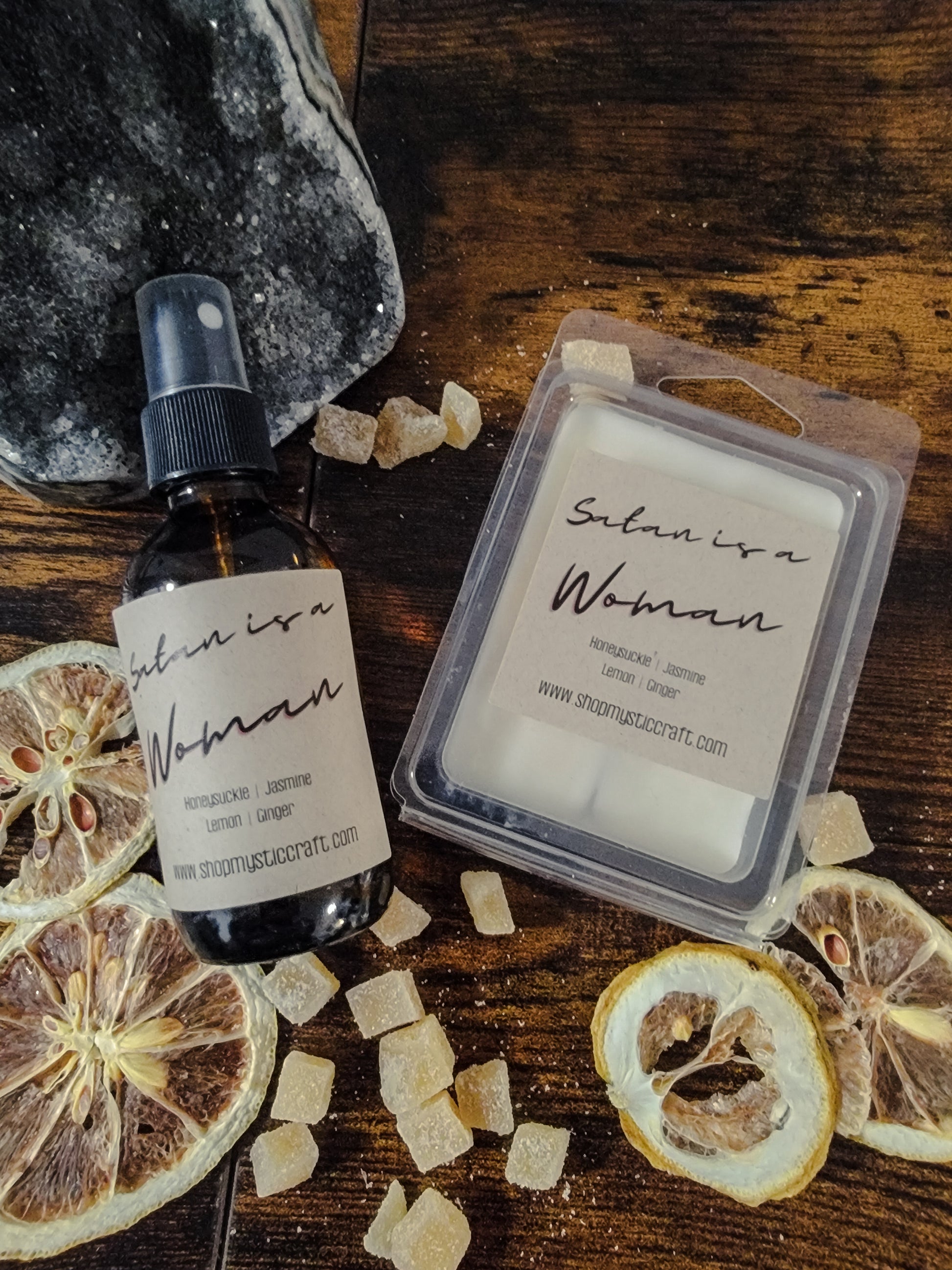 Immerse yourself in the alluring aroma that captures the essence of fierce femininity and sensual power. Let the intoxicating notes of honeysuckle and jasmine embrace your space, while the uplifting touch of lemon and the hint of ginger add a spicy and invigorating twist. Embrace the seductive allure of "Satan is a Woman" as it fills your space with an aura of alluring confidence and captivating energy.