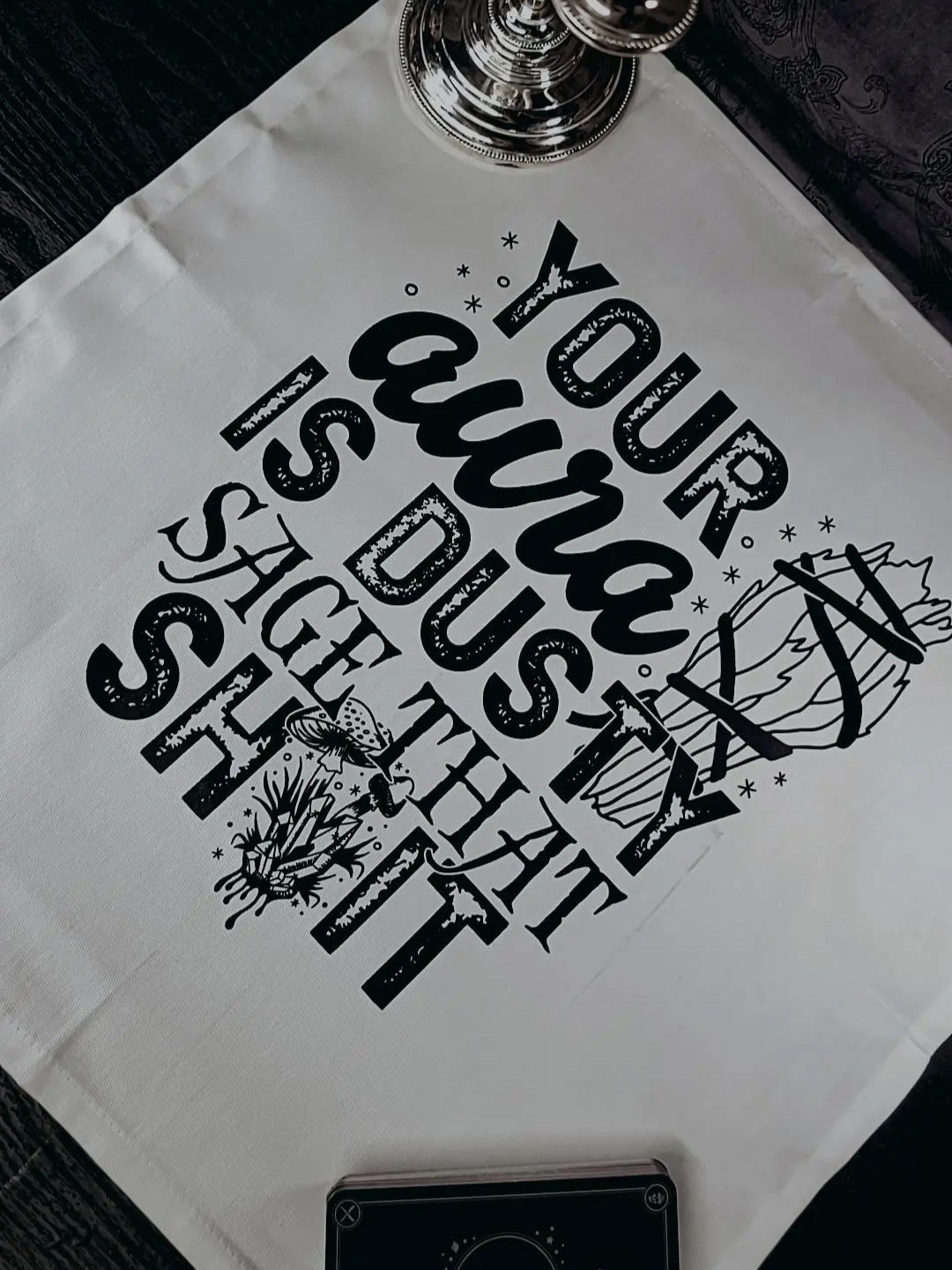 Create a unique look for your altar space with this 18x18 inch Cotton/Polyester blend cloth. Highly absorbent with a black print on a white background, it provides the perfect way to decorate and personalize. Machine wash only; hang dry. Do not iron.