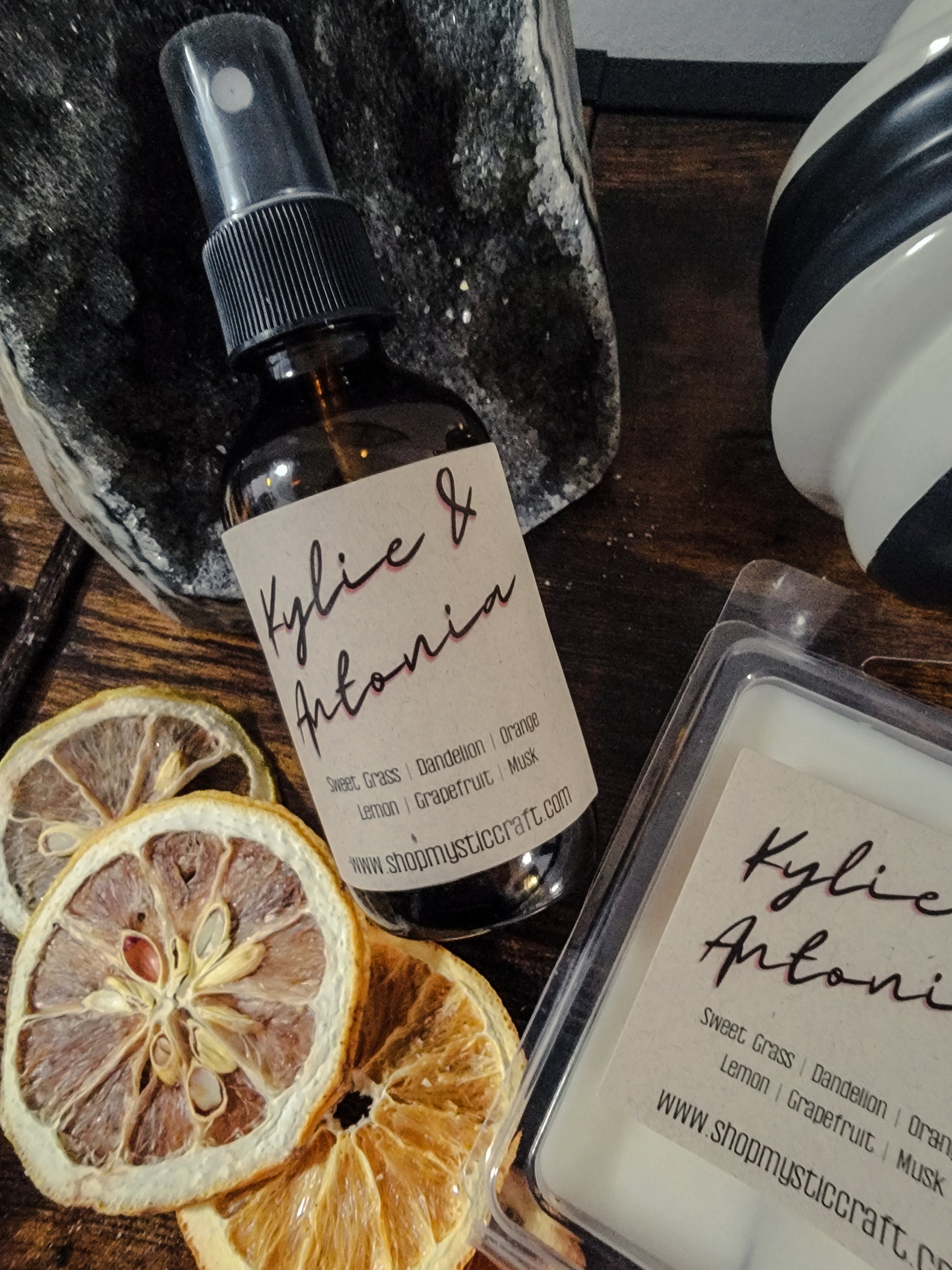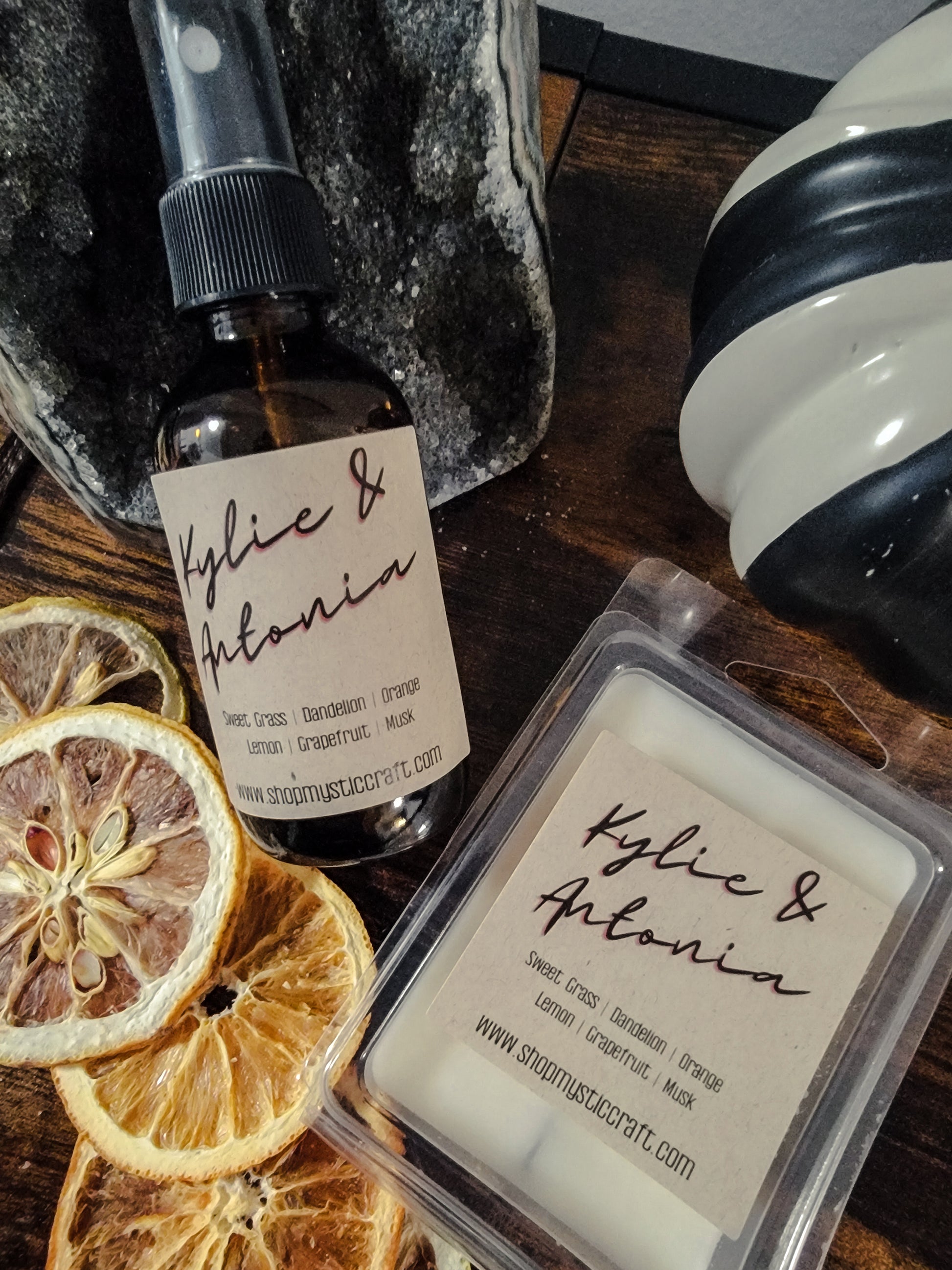 Introducing "Kylie and Antonia", a captivating room spray inspired by the enchanting world of Practical Magic. Experience the delightful blend of sweet grass, dandelion, orange, lemon, and grapefruit, carefully crafted to infuse your space with a whimsical and uplifting aroma. Allow "Kylie and Antonia" to bring a touch of magic into your home, creating an ambiance that is both enchanting and refreshing.