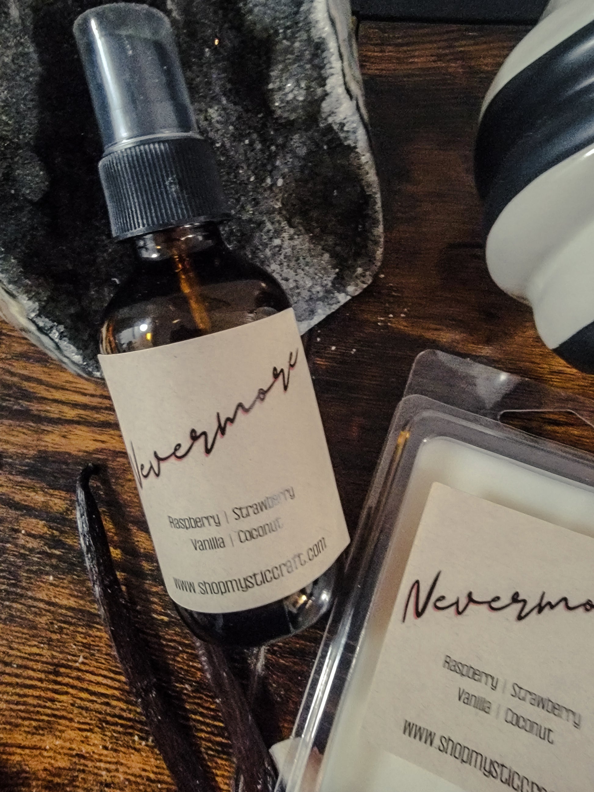 Immerse yourself in the captivating blend of raspberry, strawberry, vanilla, and coconut, reminiscent of a mysterious and enchanting atmosphere. Experience the allure of dark romanticism as the sweet notes of raspberry and strawberry dance in harmony with the warm embrace of vanilla and the subtle essence of coconut. Let Nevermore envelop your space, conjuring an ambiance of intrigue and fascination that will transport your senses to poetic realms.