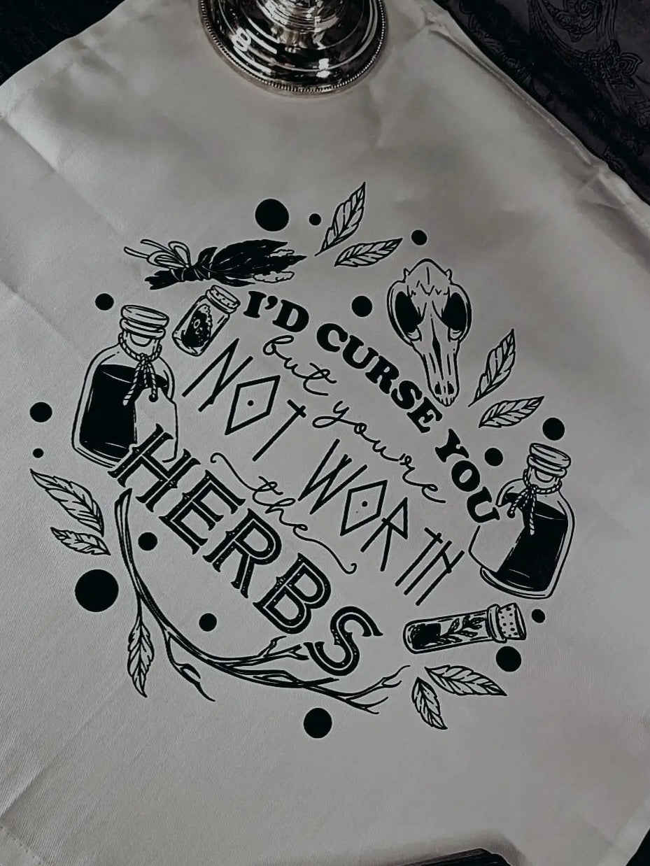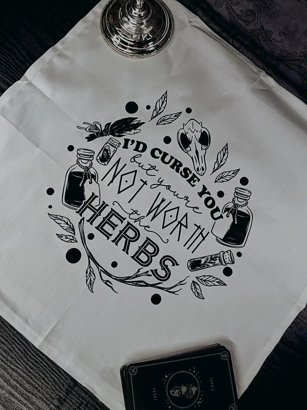 Create a unique look for your altar space with this 18x18 inch Cotton/Polyester blend cloth. Highly absorbent with a black print on a beige background, it provides the perfect way to decorate and personalize. Machine wash only; hang dry. Do not iron.