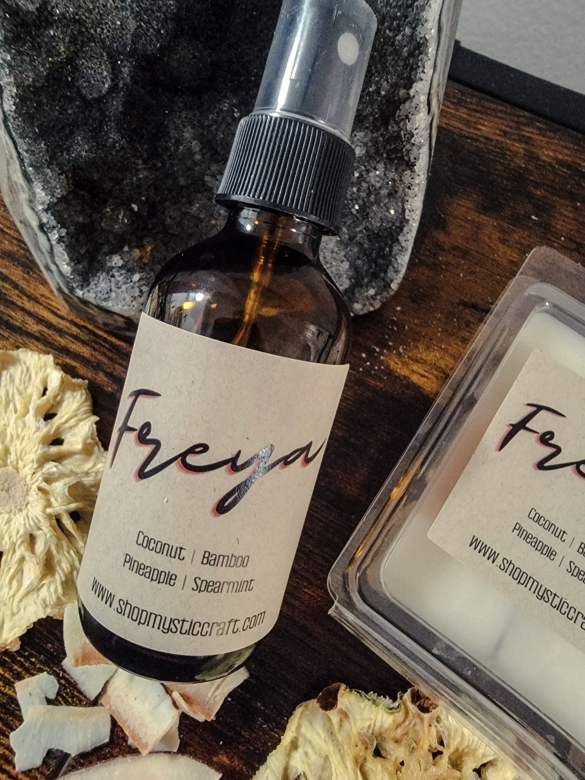 Invite the goddess's grace and mystical energy into your space. Embrace the power of love, beauty, and magic, and let this captivating room spray weave its spell, creating an ambiance that is both enchanting and empowering. Under the influence of Freya, let your space become a sanctuary where divine energies converge and dreams come to life.