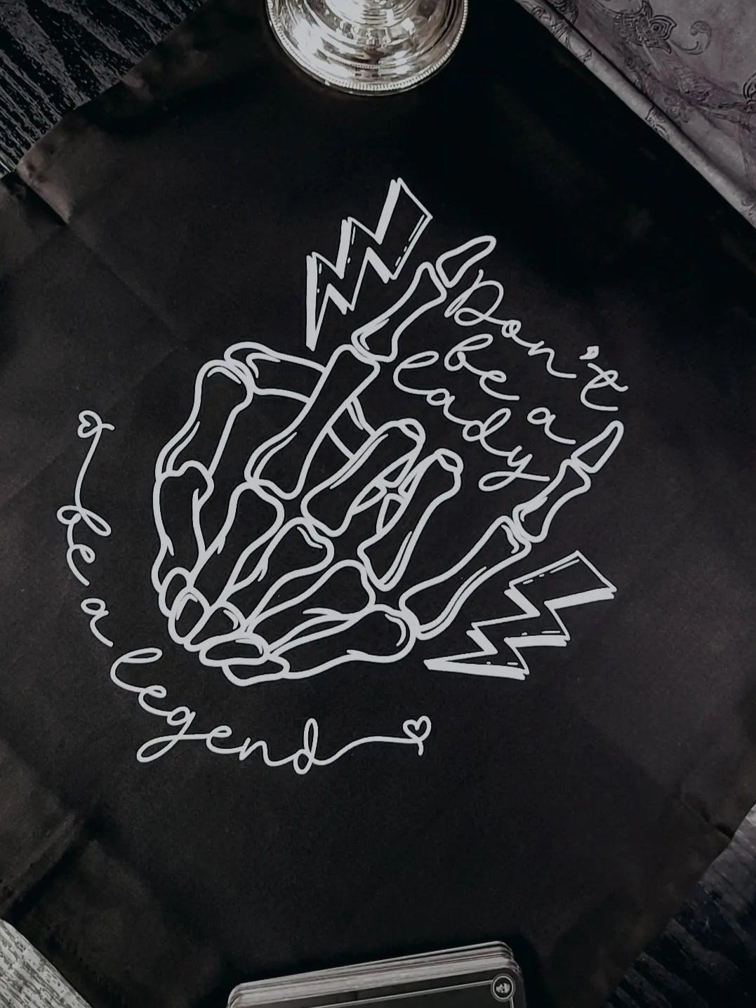 Create a unique look for your altar space with this 18x18 inch Cotton/Polyester blend cloth. Highly absorbent with a white print on a black background, it provides the perfect way to decorate and personalize. Machine wash only; hang dry. Do not iron.