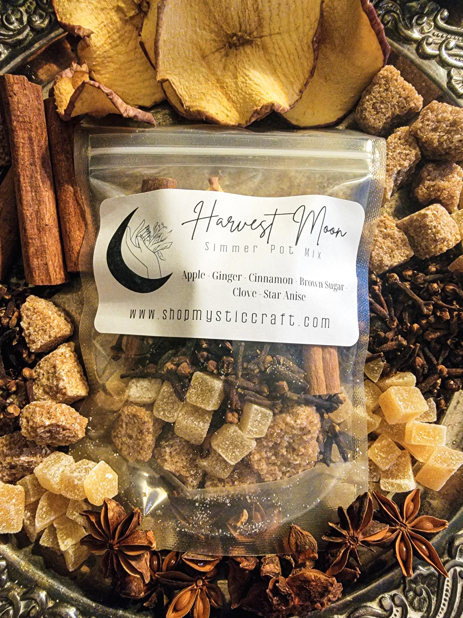 Celebrate the abundance of the season with Harvest Moon, a warm and cozy simmer pot blend crafted for gratitude, prosperity, and grounding. Infused with apple, ginger, cinnamon, brown sugar, clove, and star anise, this blend fills your space with the comforting scents of autumn magic.
